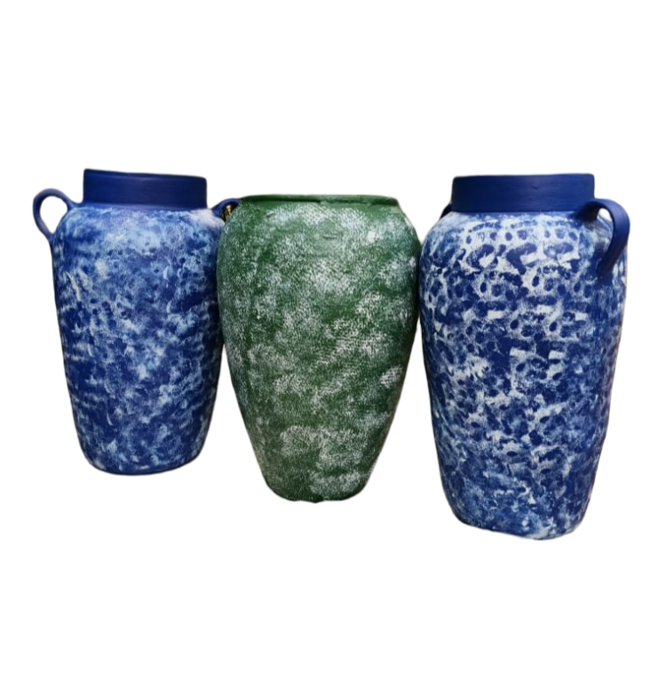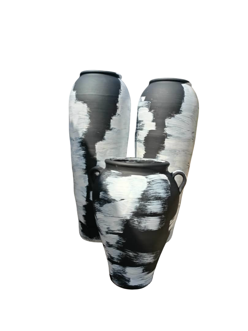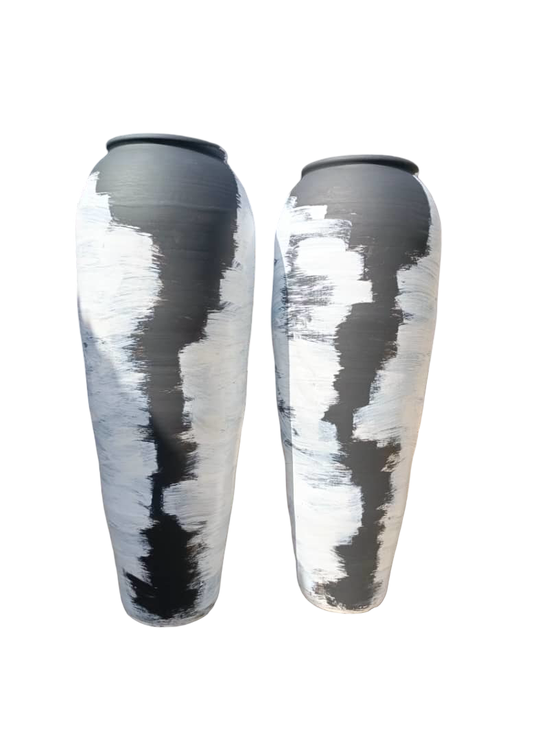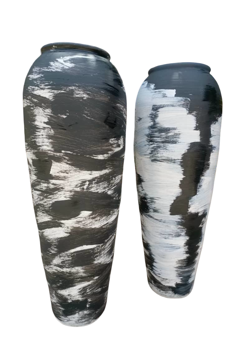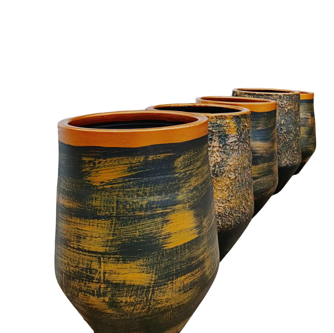 Browse the collection and choose the pot that reflects your personality — because every plant deserves a home as beautiful as it is.Prices listed are per pot (i.e. single designed pot) unless otherwise stated as a set or with stand.Click on any picture to see it in its full glory, then send us a message to order in the contact form at the bottom of the page. If you want the designs seen in the videos, indicate in the contact form.You can also try “Àyànfẹ́” - our pay “small small” subscription to own the pieces.